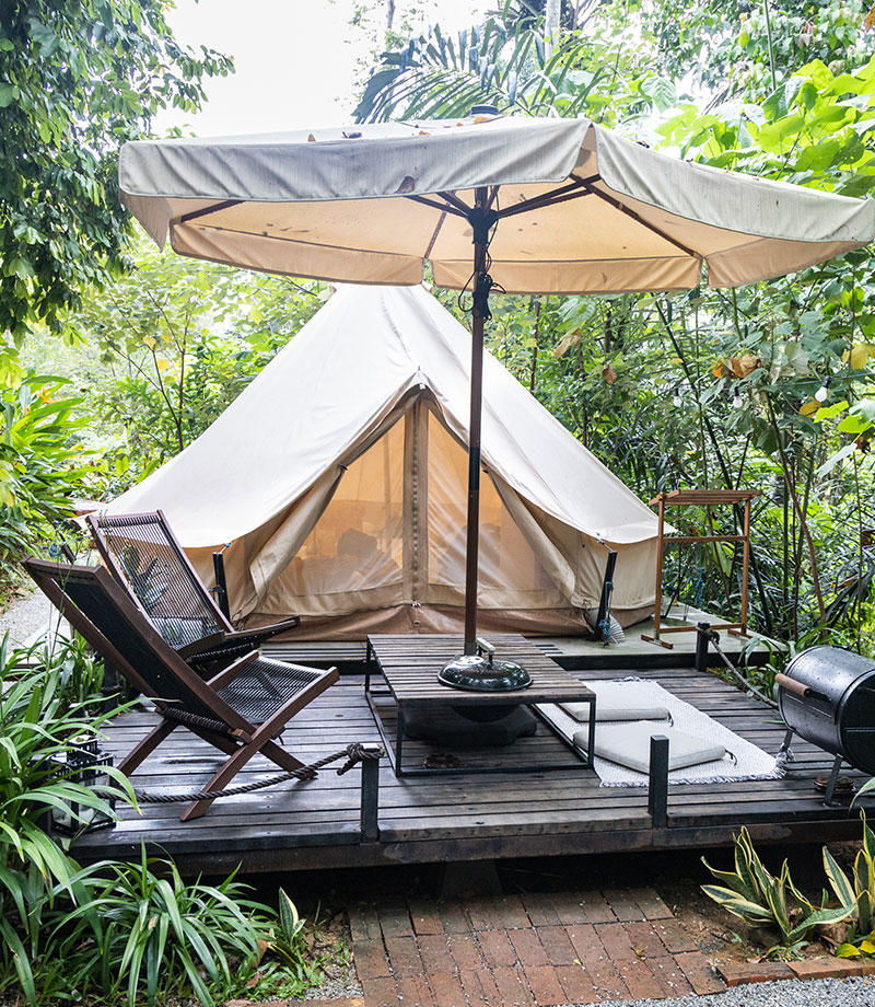 Kanopinin altında tanımlanmış bölgeler oluşturun. Dış mekan kilimleri, gruplandırılmış mobilyalar ve çadırın altına asılan ışıklar, sadece barınaktan ziyade yer hissi yaratır. Kanopi tavanı, etrafında tam bir dış mekan odasının düzenlendiği bir dayanak noktası haline gelir. Rüzgar tarafına yan duvar panelleri eklemek, alanı tamamen kapatmadan konukları esintilerden korur.